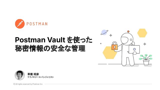 サービスでAPIを活用しようとした時に、必ず考慮しなければいけないのがセキュリティとデータプライバシー。Postmanで扱う秘密情報を不正なアクセスや漏洩から守るベストプラクティスは以前からありましたが、2024年5月リリースのPostman v11で導入されたPostman Vaultを使えば、誰もが手間をかけずに安全に秘密情報を扱うことができます。Postman API Night Osaka 2025 Winterでの発表資料です。