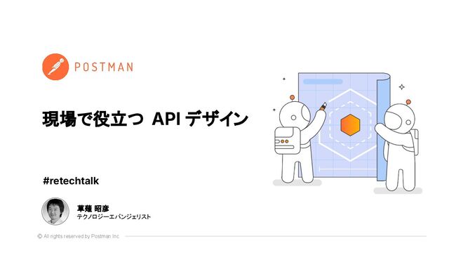利用者がすべき振る舞いが明確になる ◦ RFC7807 Problem Details for HTTP APIs の利用 • API のどこでも同じ エラー形式を使用する @postman_japan HTTP/1.1 403 Forbidden Content-Type: application/problem+json Content-Language: en { "type": "https://example.com/probs/out-of-credit", "title": "You do not have enough credit.", "detail": "Your current balance is 30, but that costs 50.", "instance": "/account/12345/msgs/abc", "balance": 30, "accounts": ["/account/12345", "/account/67890"] }