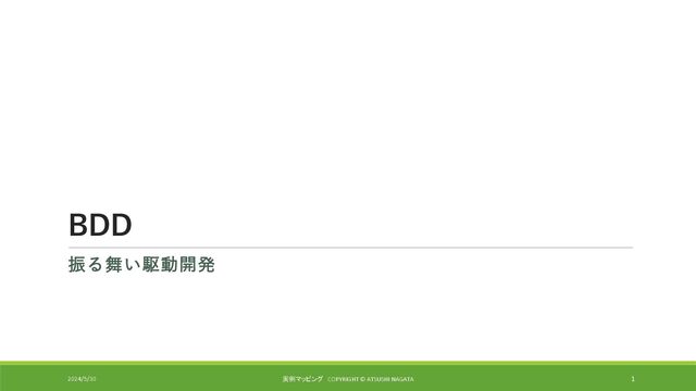 例: ユーザーが自分のアカウントにログインしているとします ◦ When ◦ ユーザーが取るアクションを記述する。 ◦ ストーリーのトリガーを定義し、開発チームにストーリーを完了するために何が必要かをよりよく理解させる ◦ 例: ユーザーが "Submit "ボタンをクリックしたとき ◦ Then ◦ ユーザーストーリーの結果を記述する ◦ これは、Whenの部分に記述されたアクションの結果として何が起こるべきかを定義し、開発チームに、 利害関係者のニーズを満たすために何を提供する必要があるかについての明確な理解を提供します。 ◦ 例:ユーザーのアカウントが正常に更新されたことを示す確認メッセージが表示されるはずです。 2024/5/30 実例マッピング COPYRIGHT © ATSUSHI NAGATA 11
