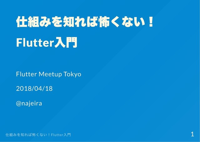仕組みを知れば怖くない! Flutter 入門 Flutter Meetup Tokyo 2018/04/18 @najeira 仕組みを知れば怖くない!Flutter 入門