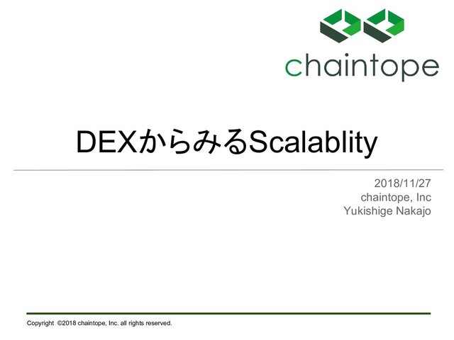 Copyright ©2018 chaintope, Inc. all rights reserved. DEXからみるScalablity 2018/11/27 chaintope,