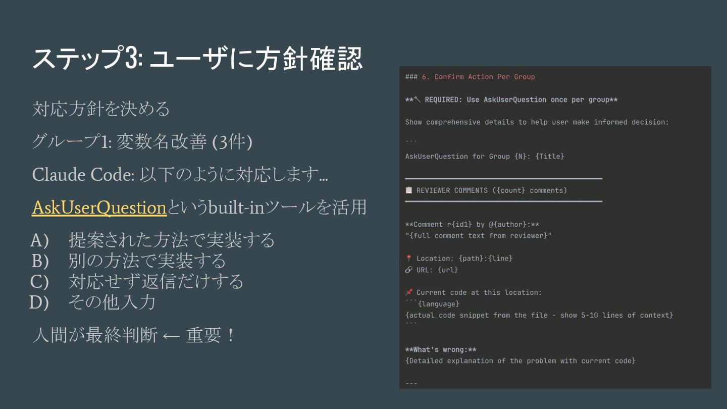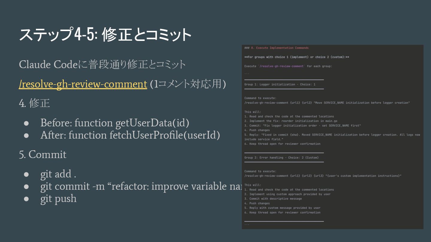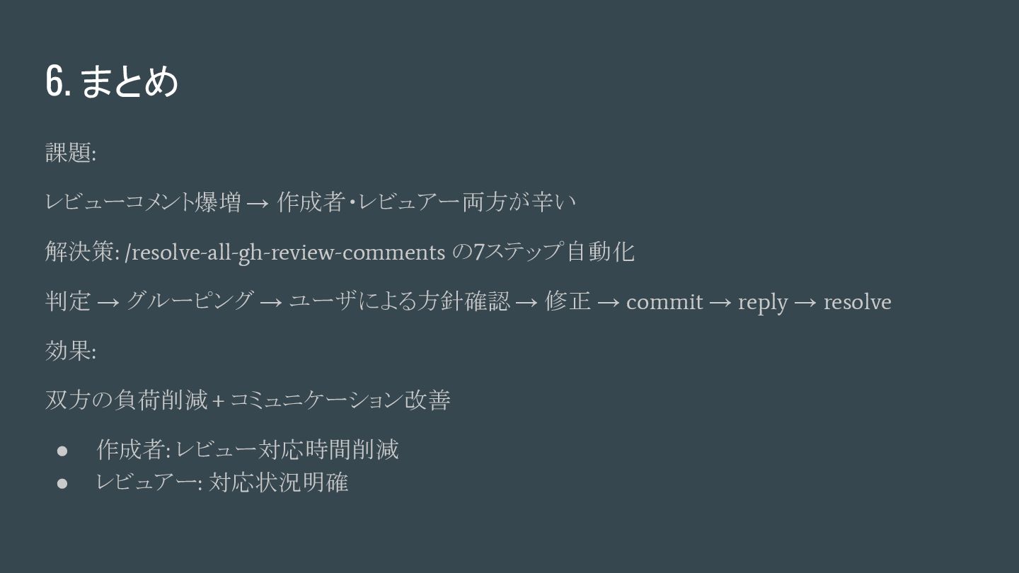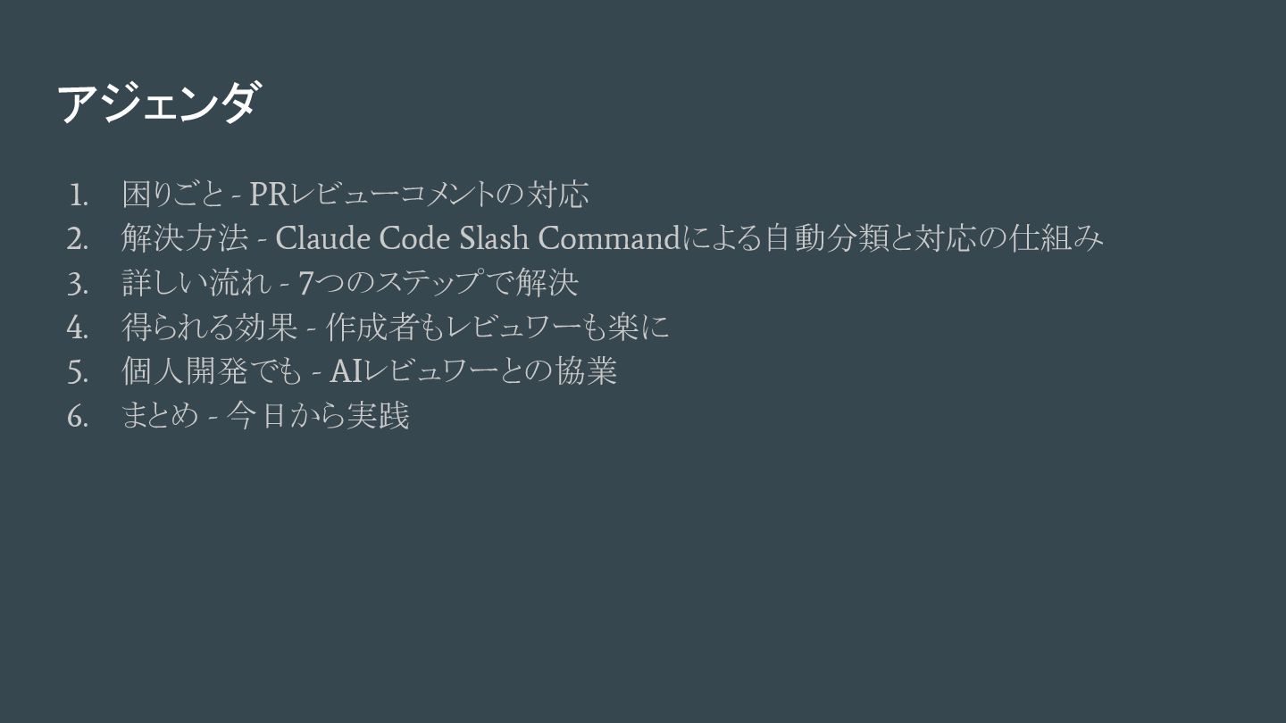 - [Claude Code] AIコーディング開発サイクル (2025年11月時点) - [Claude Code] PRのレビューを確認して返信・ResolveするSlash Command /check-gh-review-comments - [Claude Code] PR reviewコメントをResolveするCustom Slash Command - https://code.claude.com/docs/en/slash-commands