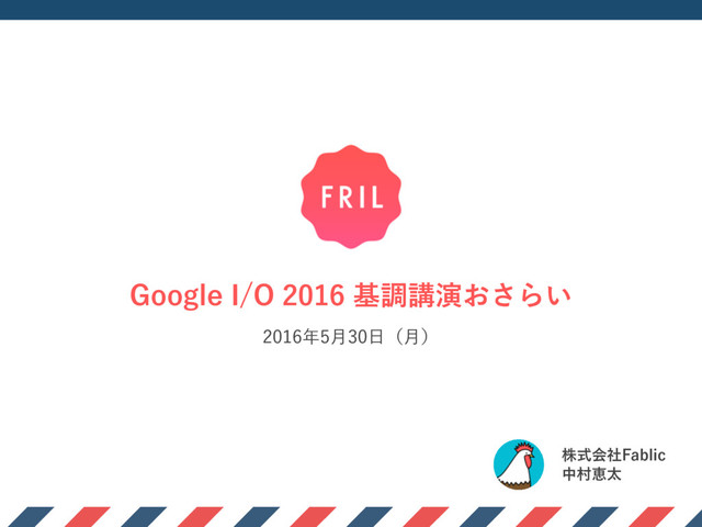 Google I/O 2016 情報共有会 @Fablic, Inc. での発表資料です。