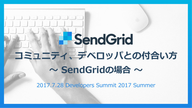 コミュニティ、デベロッパとの付合い⽅方 〜~ SendGridの場合 〜~ 2017.7.28 Developers Summit 2017 Summer