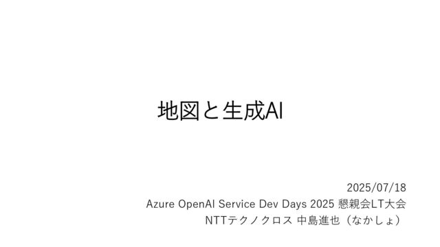 2025/7/18(金)に開催されたAzure OpenAI Service Dev Days 2025 ( https://azureai.connpass.com/event/354972/ ) の懇親会LT大会に参加した時に発表した資料です。