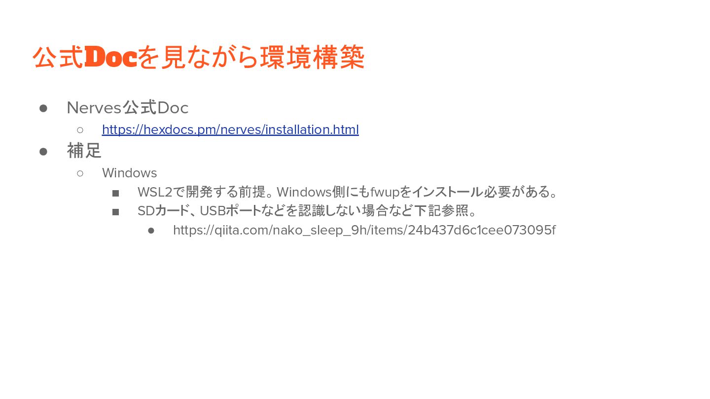 4. 公式Docを見ながら環境構築 • Nerves公式Doc ◦ https://hexdocs.pm/nerves/installation.html • 補足 ◦ Windows ▪