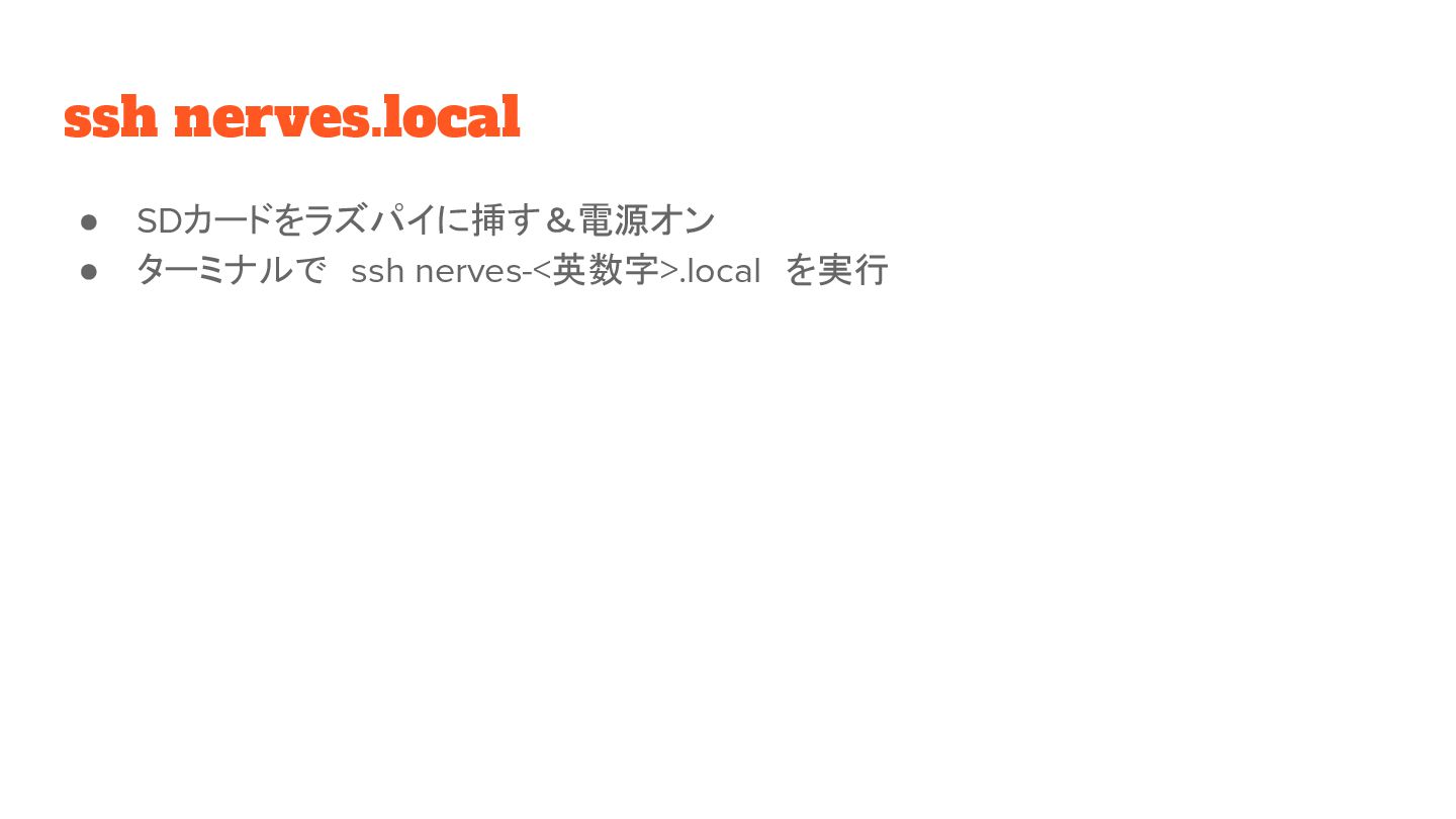 NERVES_SERIAL_NUMBER=<英数字> NERVES_WIFI_SSID=<your-wifi-ssid> NERVES_WIFI_PASSPHRASE=<your-wifi-password> fwup nerves_livebook_rpi4.fw ブラウザで nerves-<英数字>.local にアクセス
