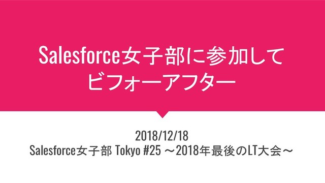 Salesforce女子部に参加して ビフォーアフター 2018/12/18 Salesforce女子部 Tokyo #25 〜2018年最後のLT大会〜