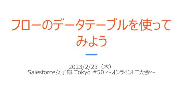 フローのデータテーブルを使って みよう 2023/2/23(木) Salesforce女子部 Tokyo #50 〜オンラインLT大会〜