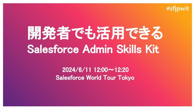 #sfjpwit 2024/6/11 12:00~12:20 Salesforce World Tour Tokyo 開発者でも活用できる