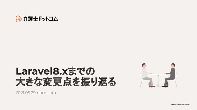 www.bengo4.com Laravel8.xまでの 大きな変更点を振り返る 2021.05.29 namizato
