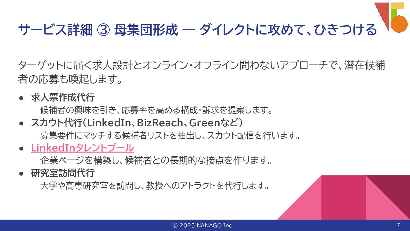 © 2025 NANAGO Inc. 採用支援サービス 「ななごーRPO」ご紹介 (2025年冬サービスイン予定)
