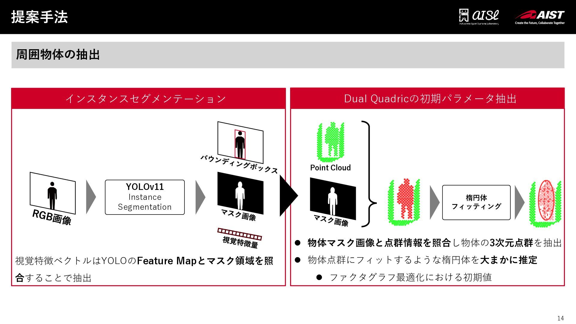14 提案手法 14 周囲物体の抽出 YOLOv11 Instance Segmentation インスタンスセグメンテーション Dual Quadricの初期パラメータ抽出
