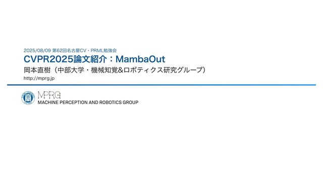 2025年8月9日の第62回名古屋CV・PRML勉強会におけるCVPR2025論文紹介の発表スライドです.NLP分野で提案されたMamba (SSM) がCV分野のタスクに本当に必要なのかを分析したMambaOut: Do We Really Need Mamba for Vision?を紹介.