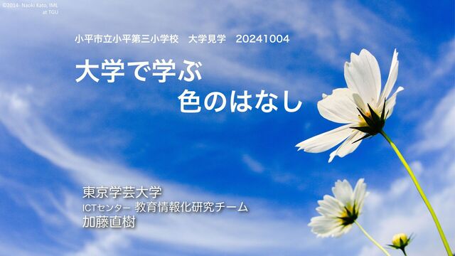 ©2014- Naoki Kato, IML at TGU ӷথϞχλͷͻΈͭ ύιίϯςϨϏɼ͍ΖΜͳ৭Λදࣔͯ͠·͢Ͷ