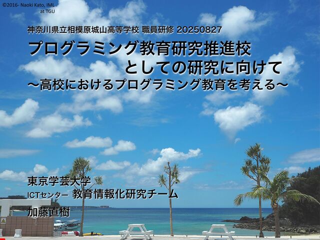 ©2016- Naoki Kato, IML at TGU ͓͠·͍ ߴߍʹ͓͚ΔϓϩάϥϛϯάڭҭΛߟ͑Δ