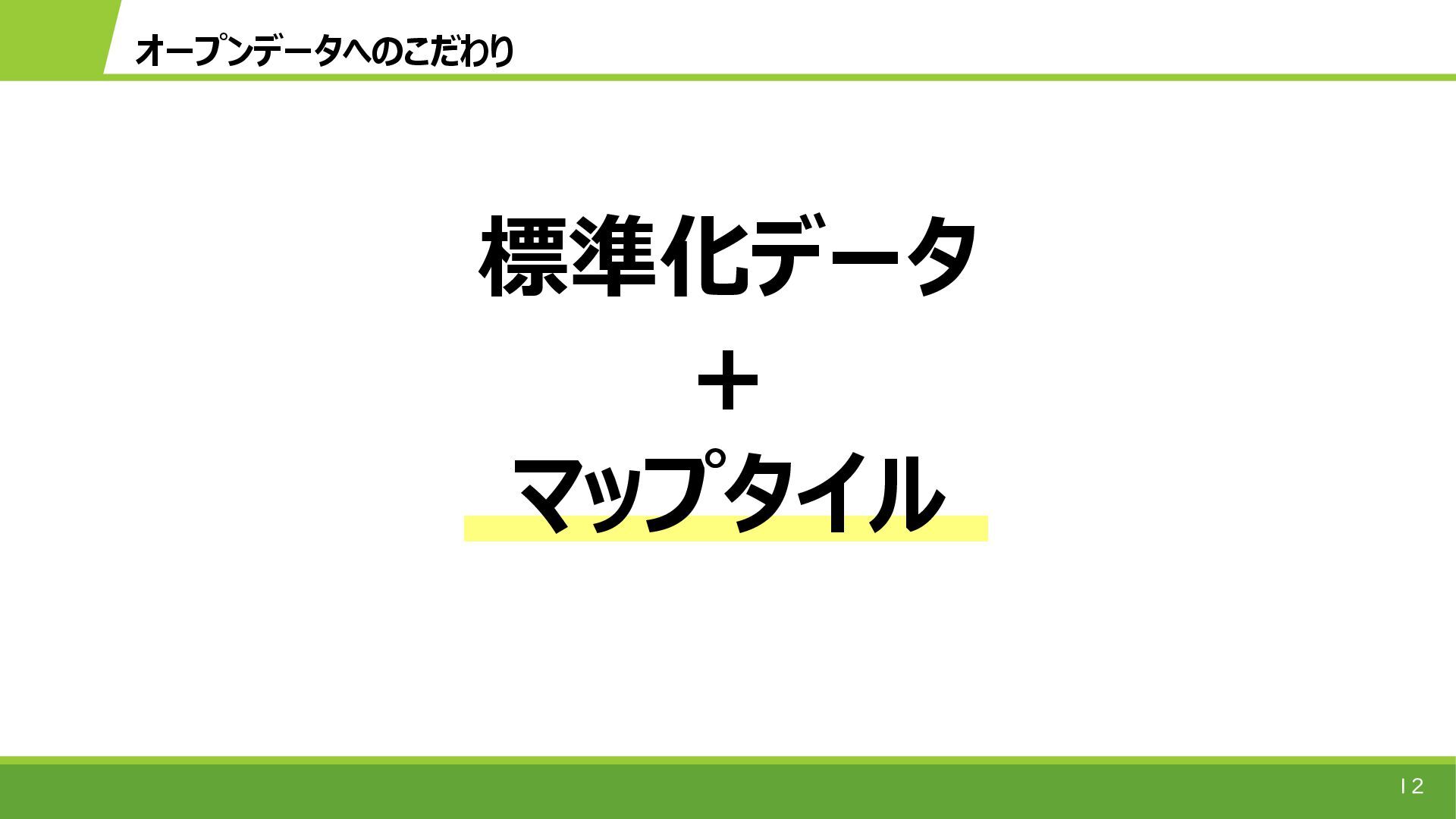 オープンデータへのこだわり 12 標準化データ + マップタイル