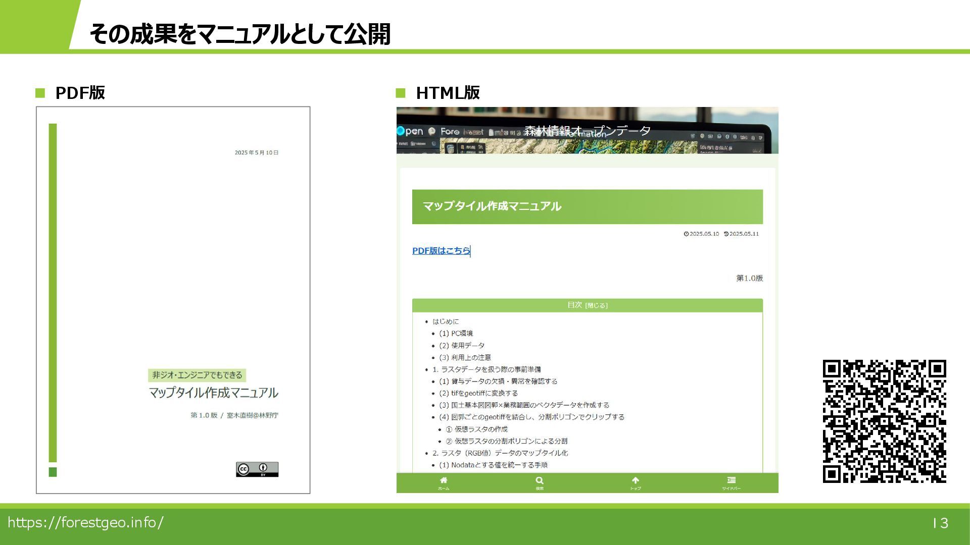 その成果をマニュアルとして公開 13 PDF版 HTML版 https://forestgeo.info/