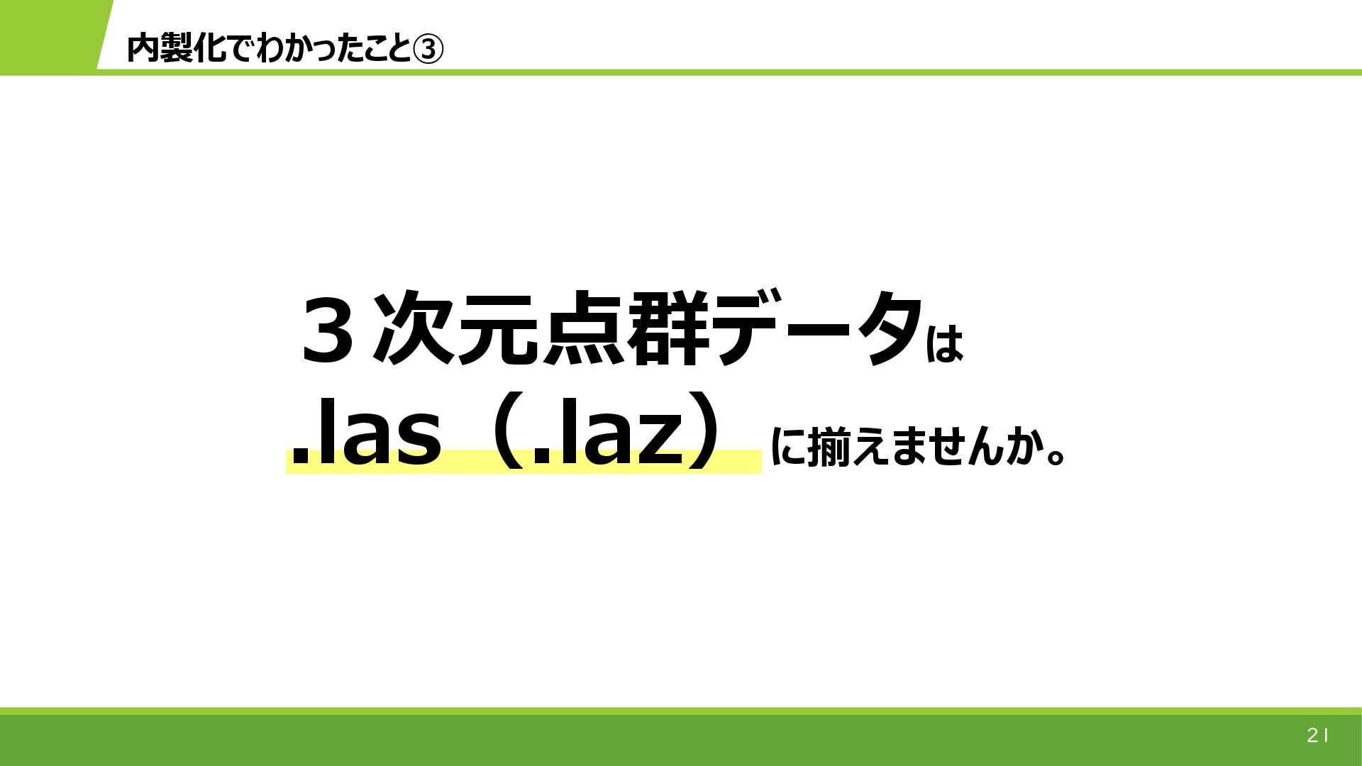 内製化でわかったこと③ 21 3次元点群データは .las(.laz)に揃えませんか。