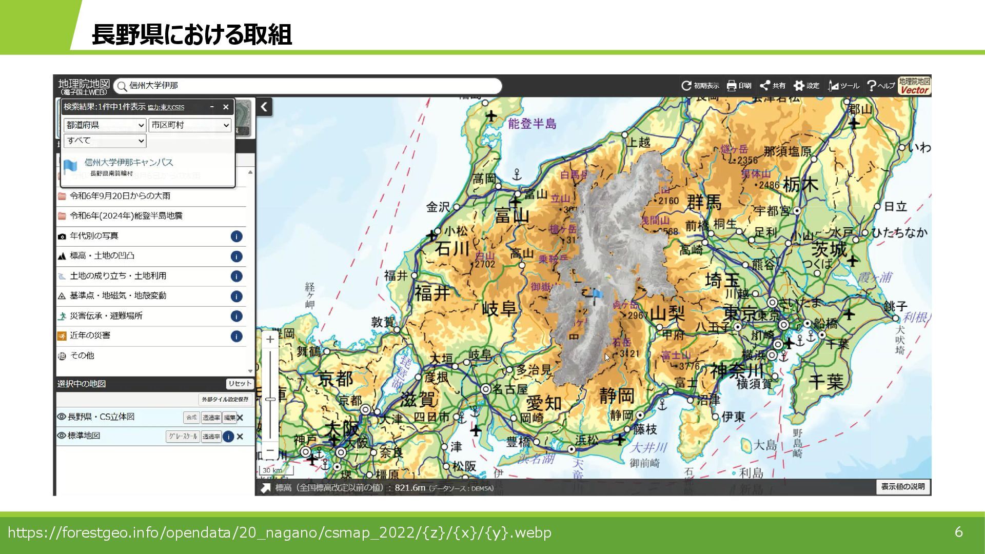 長野県における取組 6 https://forestgeo.info/opendata/20_nagano/csmap_2022/{z}/{x}/{y}.webp