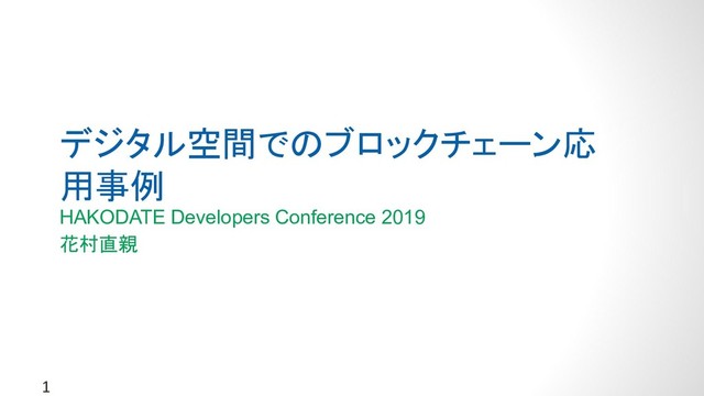 1 デジタル空間でのブロックチェーン応 用事例 HAKODATE Developers Conference 2019 花村直親