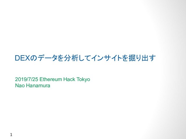1 DEXのデータを分析してインサイトを掘り出す 2019/7/25 Ethereum Hack Tokyo Nao Hanamura