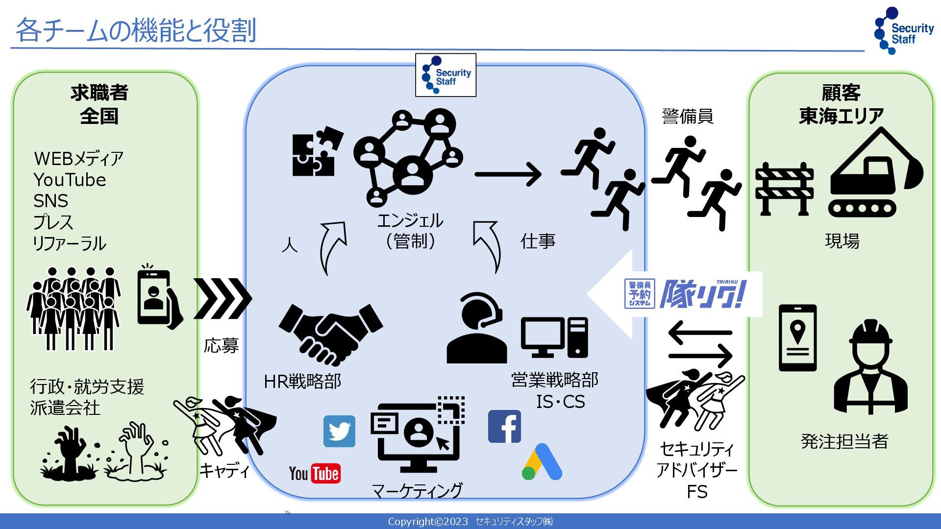 警備員 営業戦略部 IS・CS HR戦略部 マーケティング 人 仕事 応募 顧客 東海エリア 求職者 全国 キャディ WEBメディア YouTube SNS プレス リファーラル 行政・就労支援 派遣会社