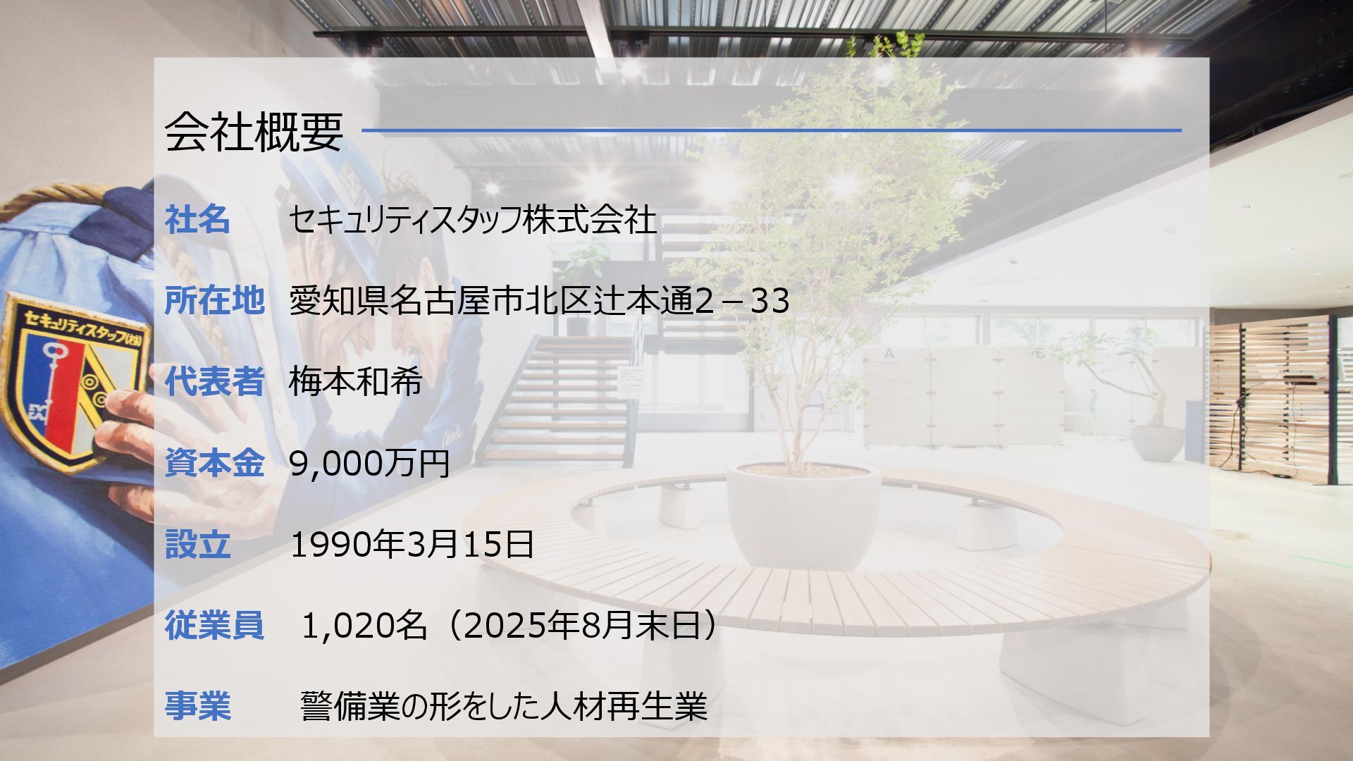 行政からの支援もあるが、民間企業で“普通”働くには支援に限界がある。 私達は福祉施設でもボランティアでもない補助金ももらっていない。 就労弱者の支援が警備業というビジネスとして成立させるからこそ、永続 性がある自律した社会貢献ができると考えている。