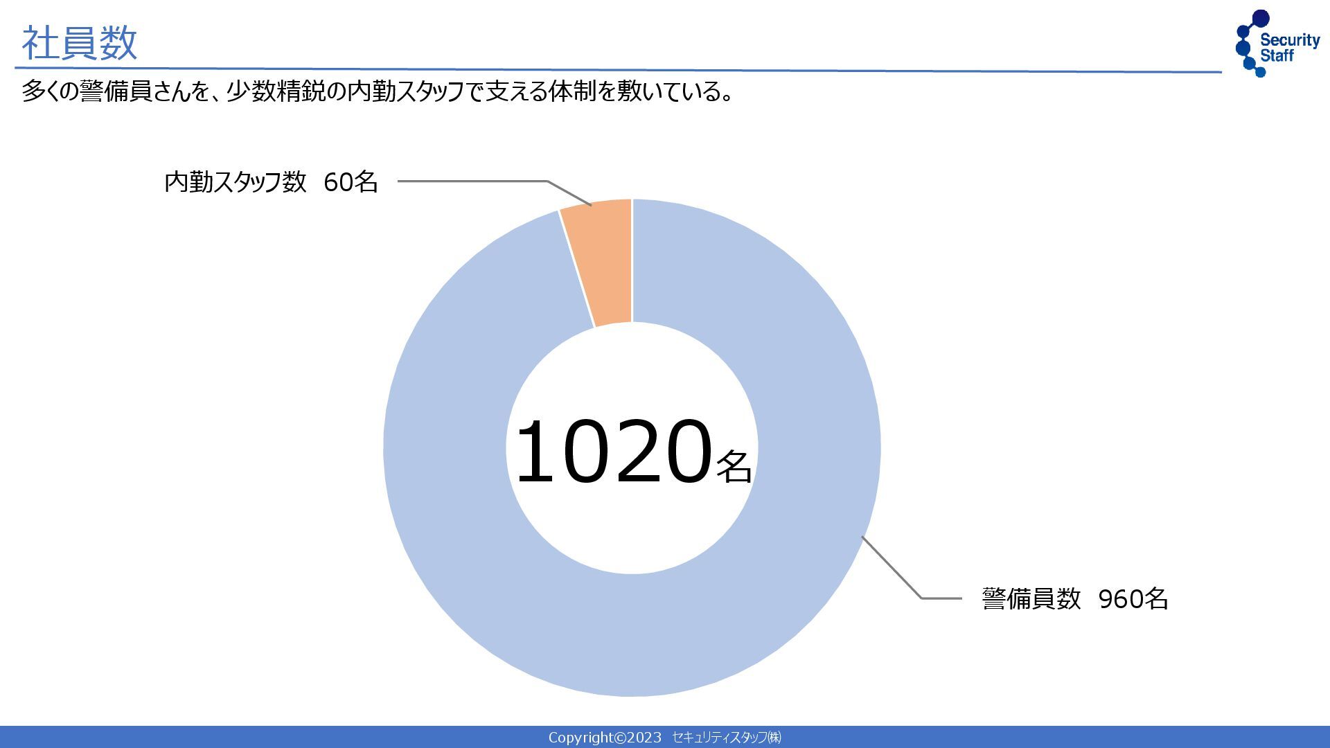 2. Copyright©2023 セキュリティスタッフ㈱ 直近の業績 年平均20~30%の成長を実現し、売上・警備員数ともに愛知県内1位(2号警備)の規模に達する。 0 500 1000 1500 2000 2500