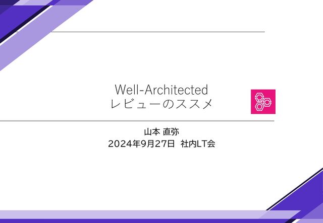 • OPS 4. オブザーバビリティをワークロードに実装するにはどうすればよいでしょうか? • KPIなど定量的に運用できているか測れている? • OPS 5. どのように欠陥を減らし、修正を容易にして、本番環境へのフローを改善するのですか? • バージョン管理や複数環境で運用している? • OPS 6. どのようにデプロイのリスクを軽減しますか? • デプロイする前にテストしてる? • OPS 7. ワークロードをサポートする準備が整っていることはどうすれば確認できるでしょうか? • デプロイするときに手順決めたり作業者が練習したりしてる? • OPS 8. 組織でワークロードのオブザーバビリティを活用するにはどうすればよいでしょうか? • ログ出力したり、分析したりしている? • OPS 9. オペレーションの正常性をどのように把握しますか? • ログ(メトリクス)を取得して改善しようとしてる? • OPS 10. ワークロードと運用イベントはどのように管理しますか? • 問題が起こった時にアラート出したり、担当者にエスカレーションする手順ある? 16 どのPJでもどれかはやっているはず。まずはその内容をチェックすればOK。 余力があれば他の項目をチェックできれば検討漏れに気が付きやすい