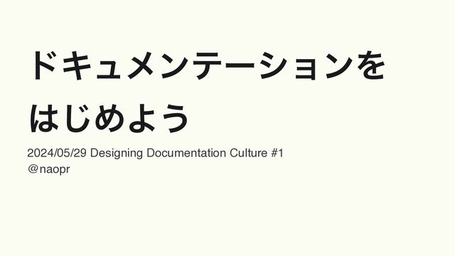 υΩϡϝϯςʔγϣϯΛ ͡ΊΑ͏ 2024/05/29 Designing Documentation Culture #1 @naopr