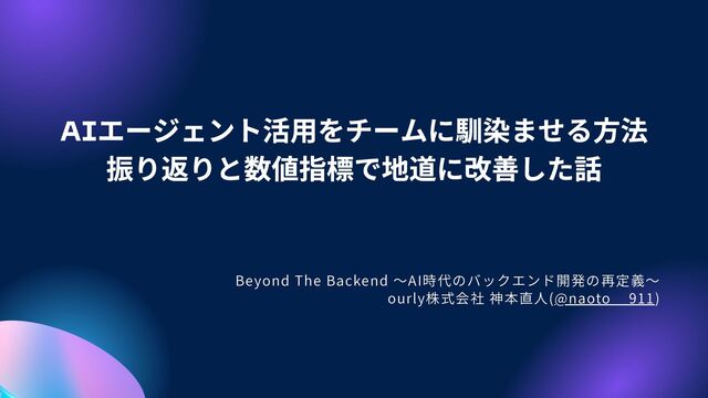 AI エージェント活用をチームに馴染ませる方法 振り返りと数値指標で地道に改善した話 Presentation Beyond The Backend 〜AI時代のバックエンド開発の再定義〜 ourly株式会社 神本直人(@naoto__911)