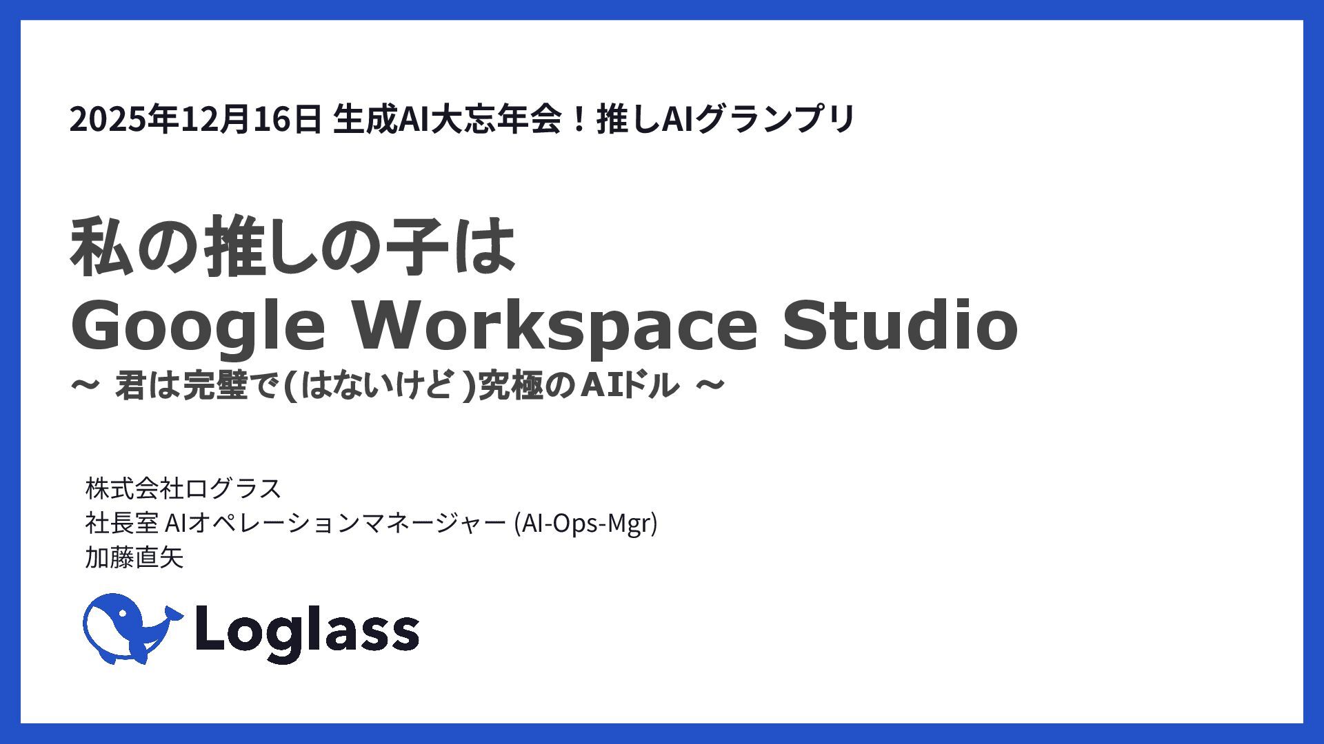 251216登壇資料_生成AI大忘年会_推しAIグランプリ_僕の推しの子_Google_Workspace_Studioは_完璧_ではないけど_究極のAIドル.pdf