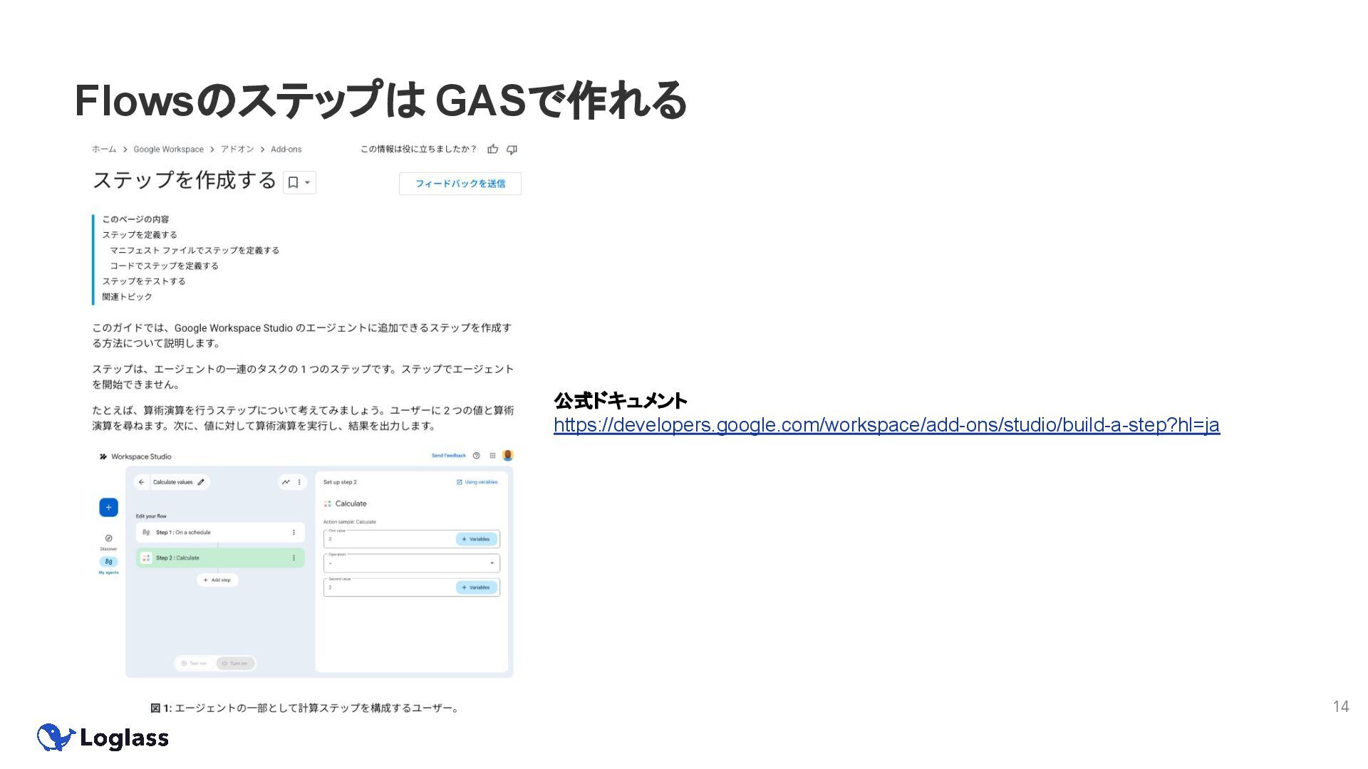 14 Flowsのステップは GASで作れる 公式ドキュメント https://developers.google.com/workspace/add-ons/studio/build-a-step?hl=ja