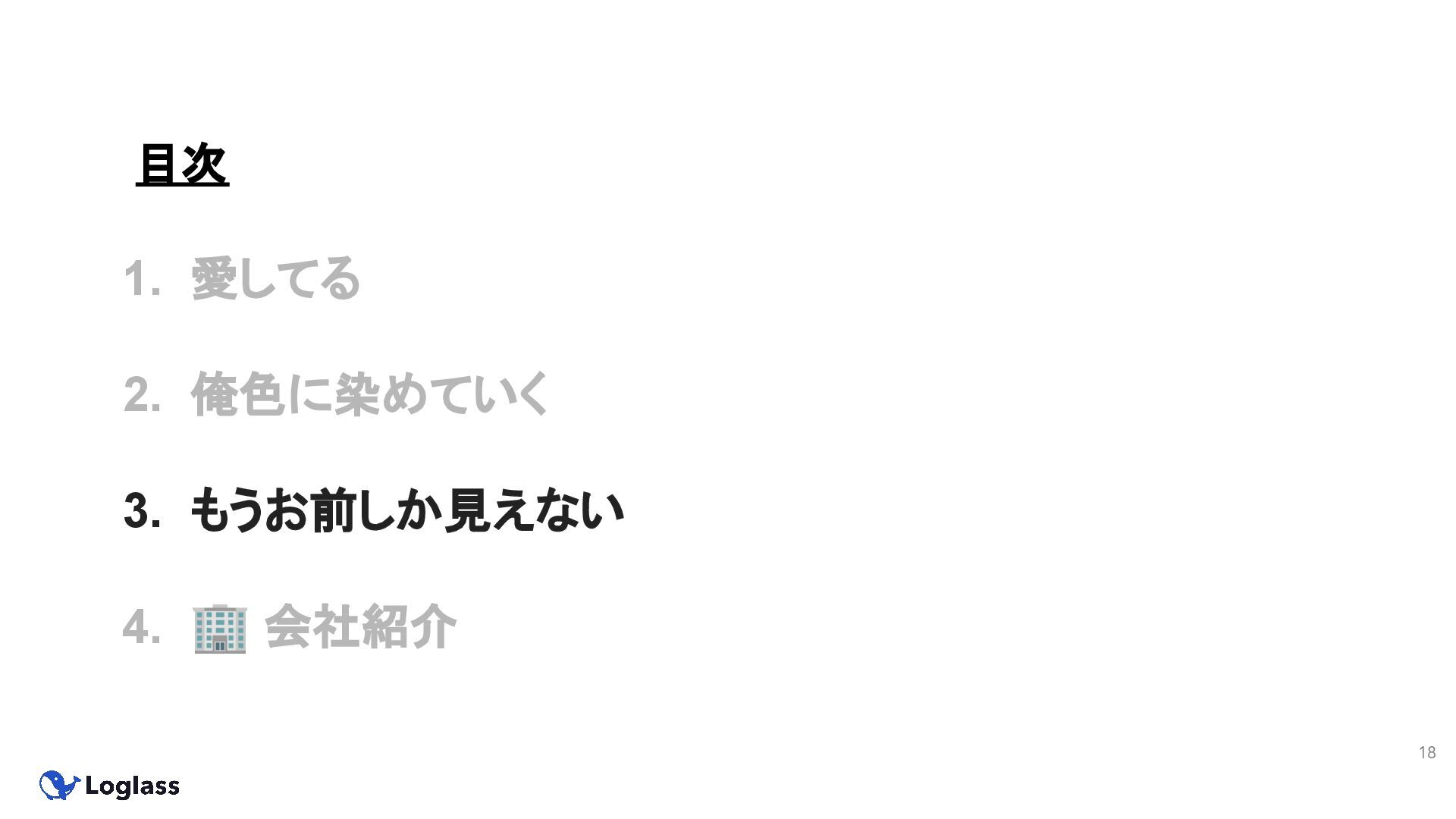 18 1. 愛してる 2. 俺色に染めていく 3. もうお前しか見えない 4. 🏢 会社紹介