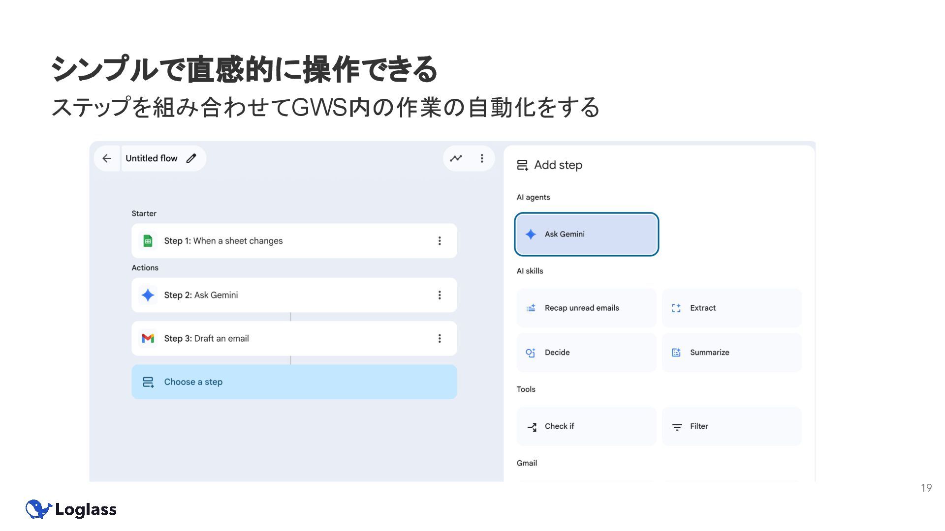 19 シンプルで直感的に操作できる ステップを組み合わせてGWS内の作業の自動化をする
