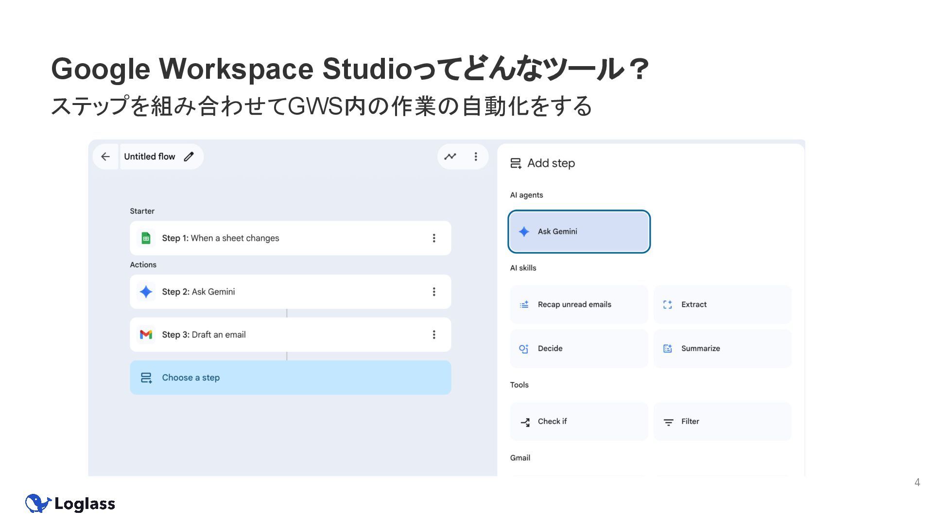 4 Google Workspace Studioってどんなツール? ステップを組み合わせてGWS内の作業の自動化をする