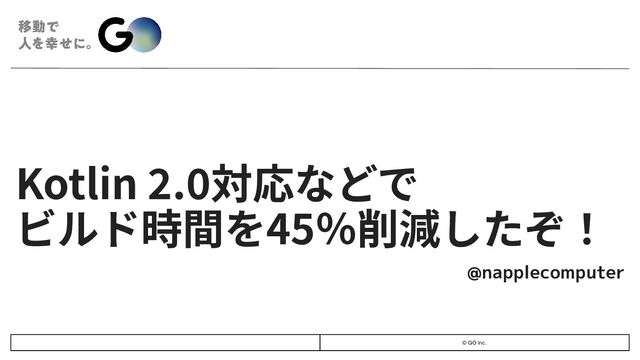 © GO Inc. Kotlin 2.0対応などで ビルド時間を45%削減したぞ! @napplecomputer