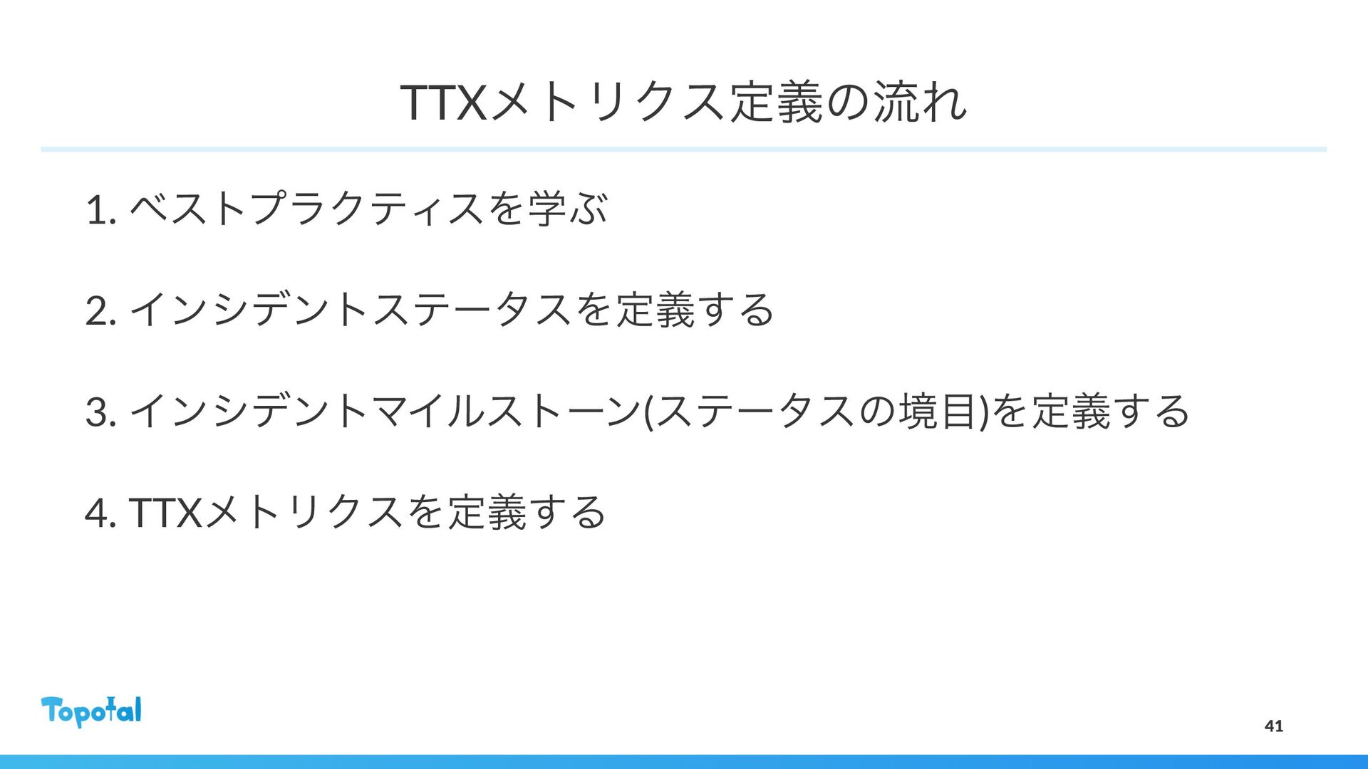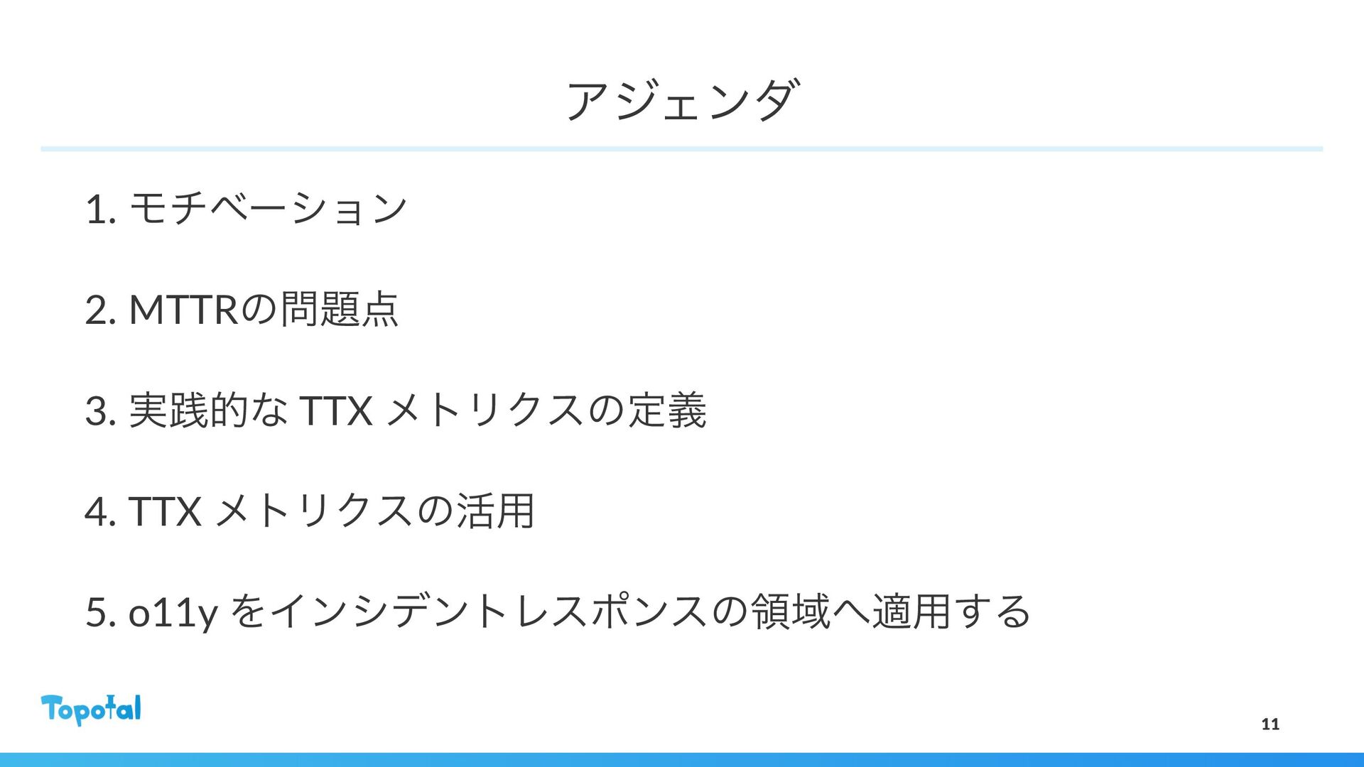 ΞδΣϯμ 1. Ϟνϕʔγϣϯ 2. MTTRͷ 3. ࣮ફతͳ TTX ϝτϦΫεͷఆٛ 4.
