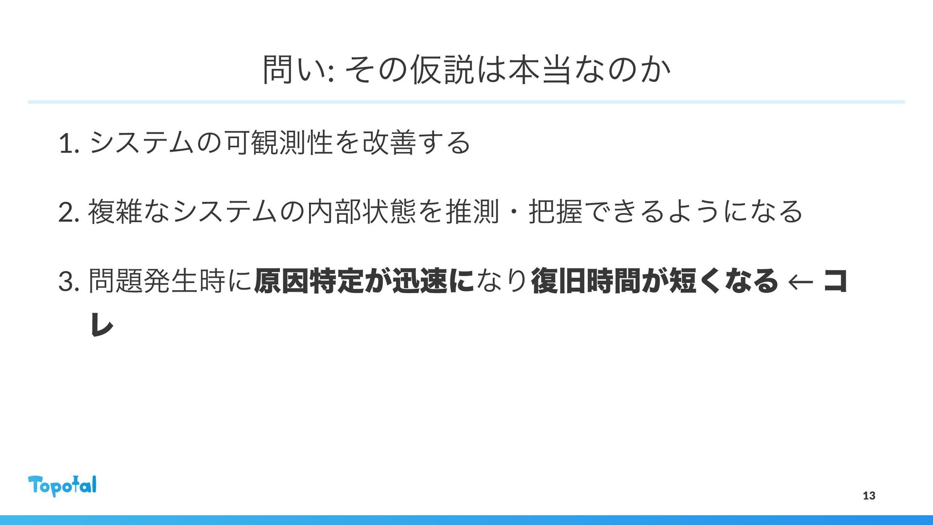 ͍: ͦͷԾઆຊͳͷ͔ 1. γεςϜͷՄ؍ଌੑΛվળ͢Δ 2. ෳࡶͳγεςϜͷ෦ঢ়ଶΛਪଌɾѲͰ͖ΔΑ͏ʹͳΔ 3. ൃੜ࣌ʹݪҼಛఆ͕ਝʹͳΓ෮چ͕࣌ؒ͘ͳΔ ← ί
