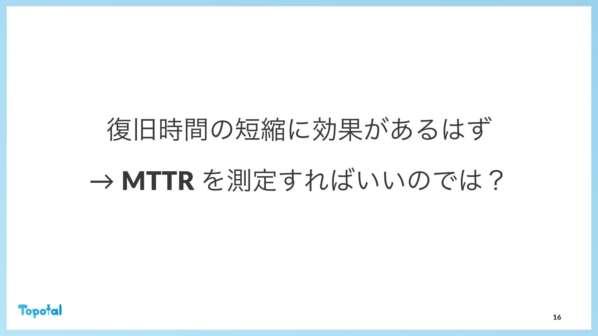 ෮چ࣌ؒͷॖʹޮՌ͕͋Δͣ → MTTR Λଌఆ͢Ε͍͍ͷͰʁ 16