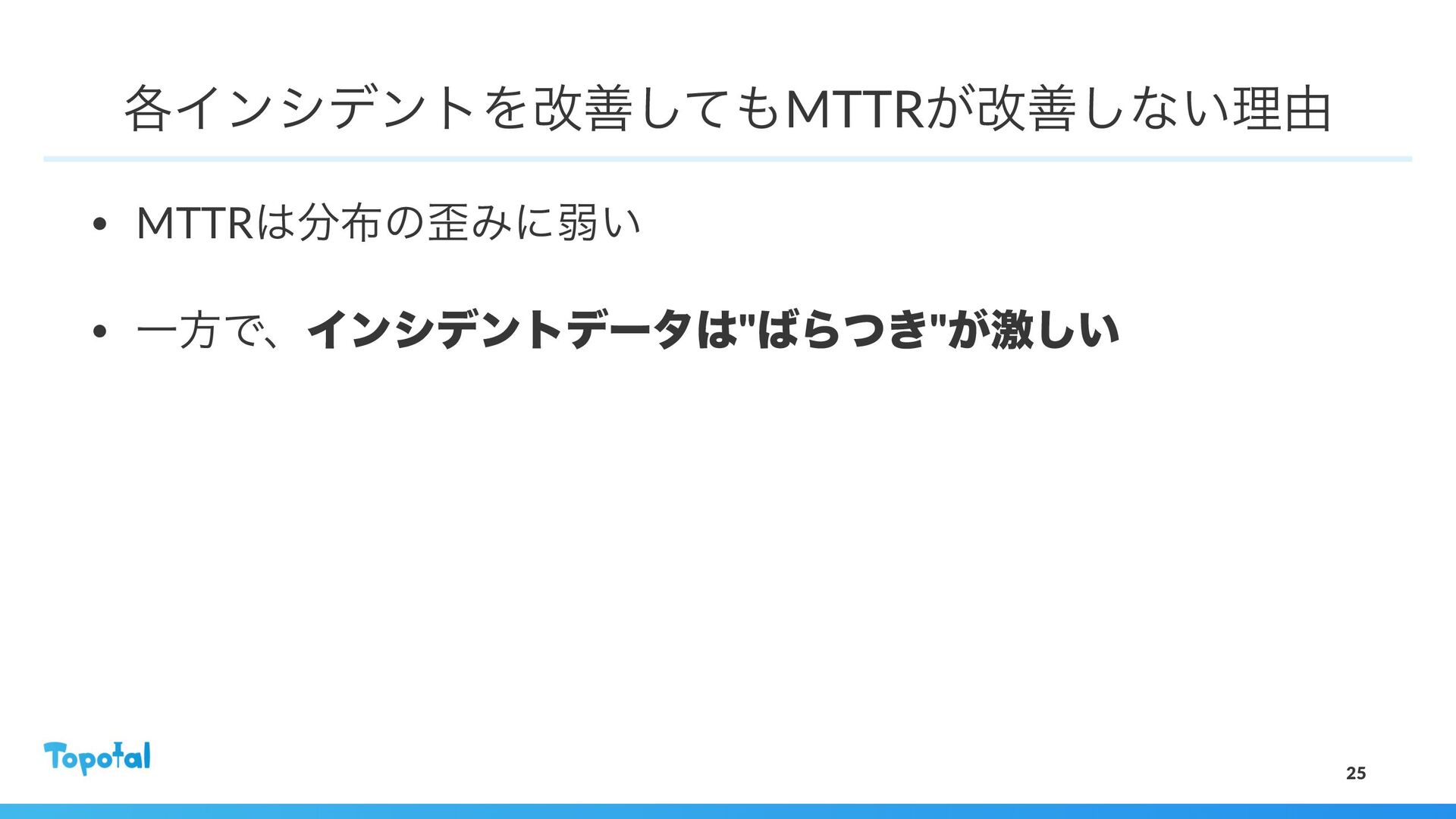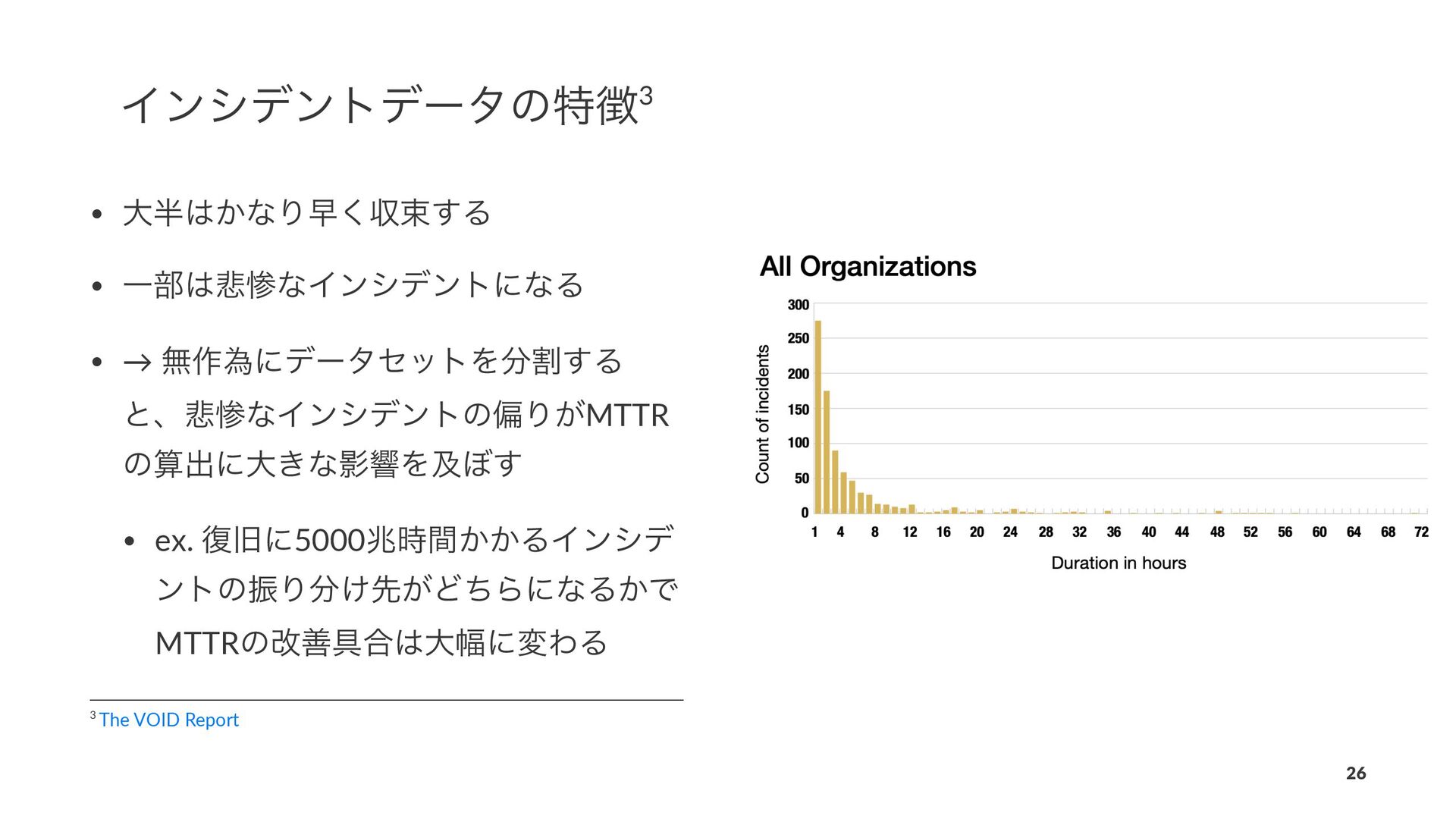 ֤ΠϯγσϯτΛվળͯ͠MTTR͕վળ͠ͳ͍ཧ༝ • MTTRͷΈʹऑ͍ • ҰํͰɺΠϯγσϯτσʔλ"Β͖ͭ"͕ܹ͍͠ 25