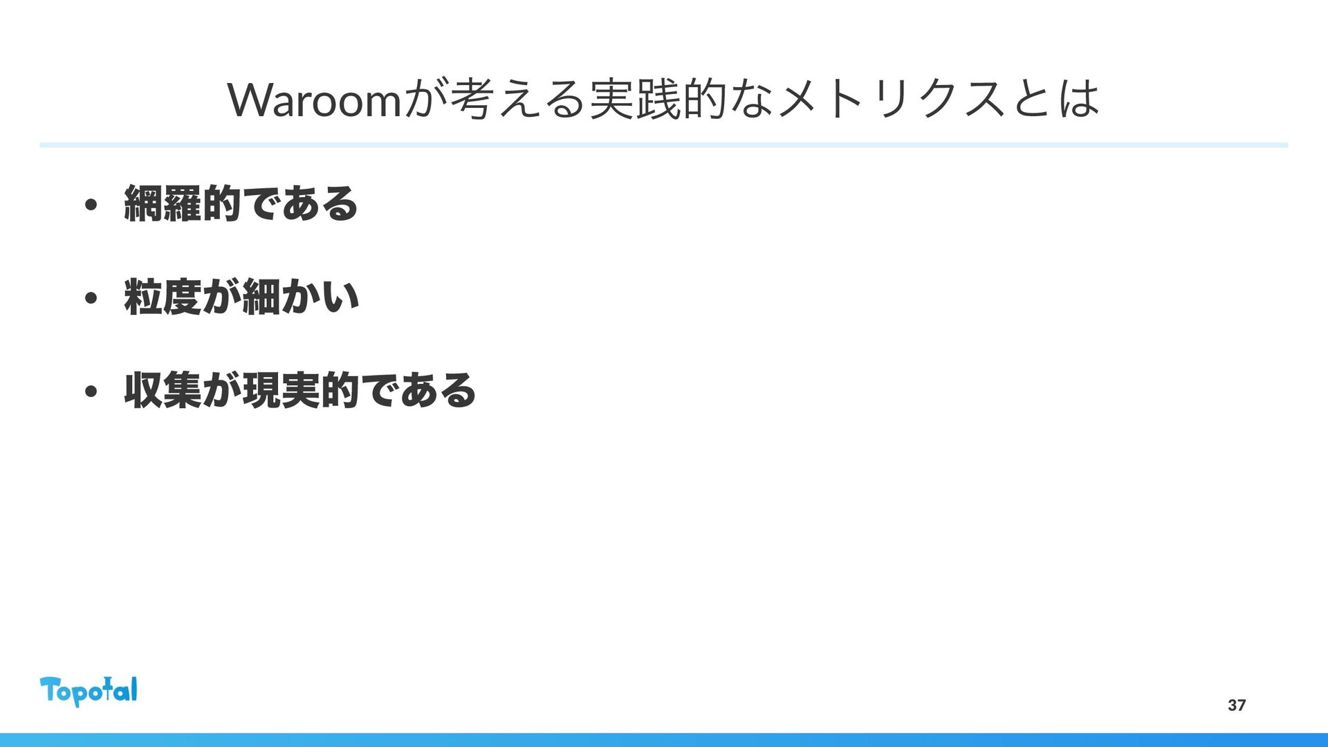 Waroom͕ߟ͑Δ࣮ફతͳϝτϦΫεͱ • ཏతͰ͋Δ • ཻ͕ࡉ͔͍ • ऩू͕ݱ࣮తͰ͋Δ 37