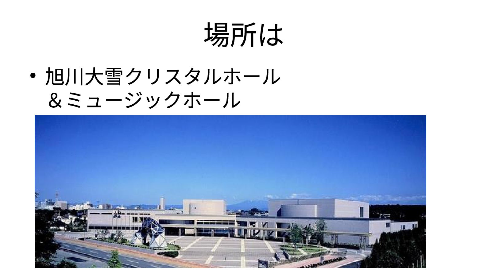 場所は • 旭川大雪クリスタルホール &ミュージックホール
