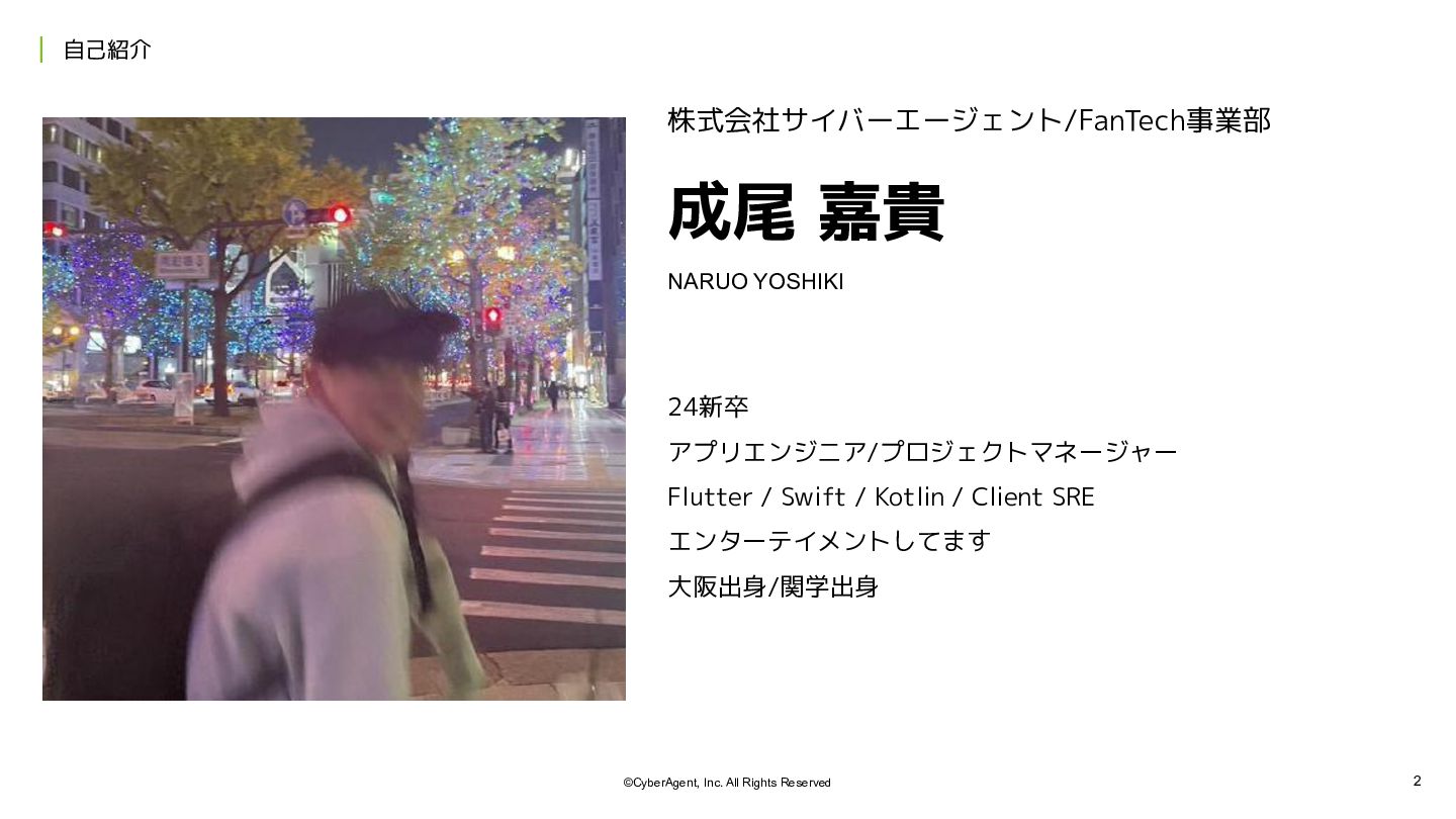 1. 2 ©CyberAgent, Inc. All Rights Reserved 自己紹介 成尾 嘉貴 24新卒