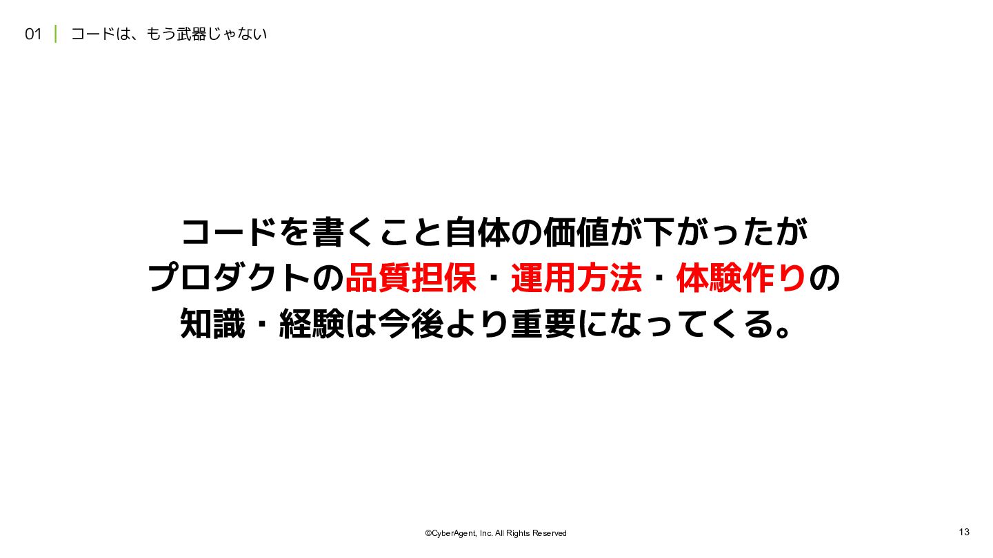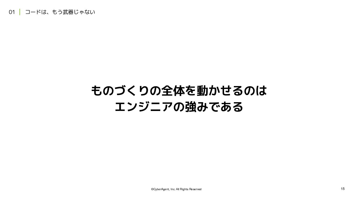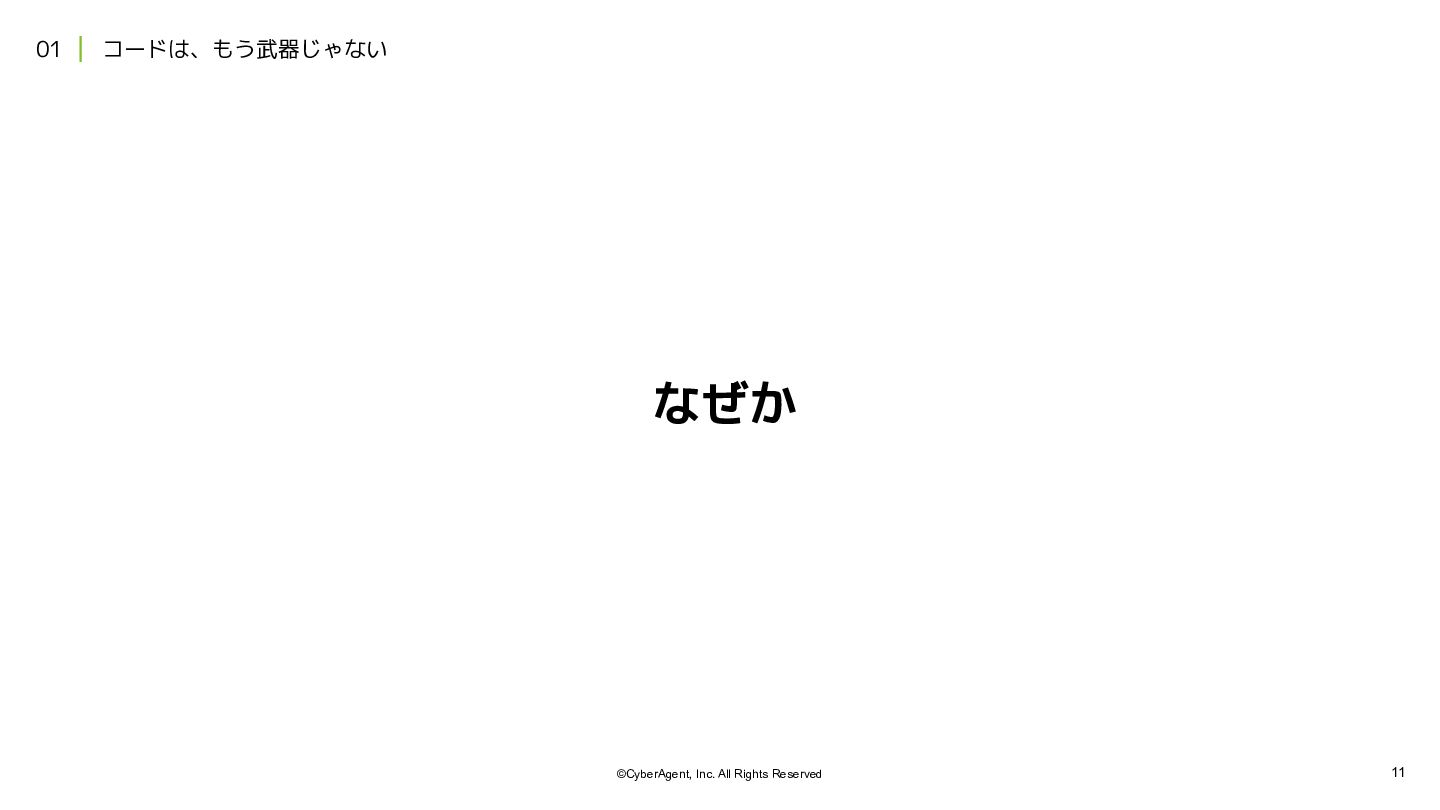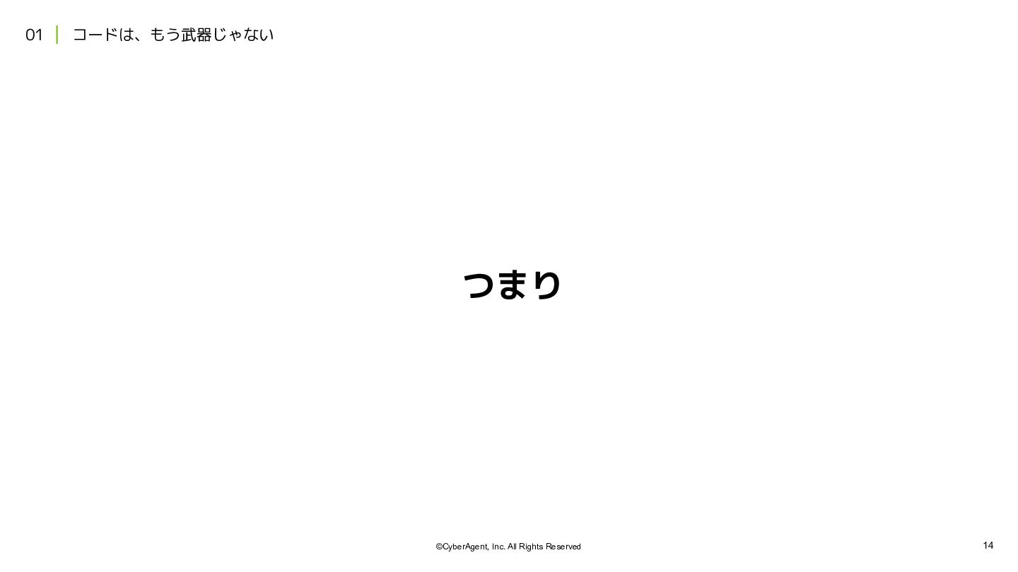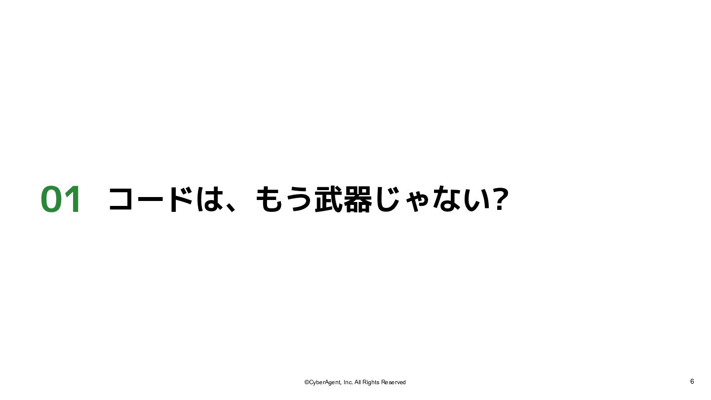 2. 12 ©CyberAgent, Inc. All Rights Reserved 01 | コードは、もう武器じゃない 項目
