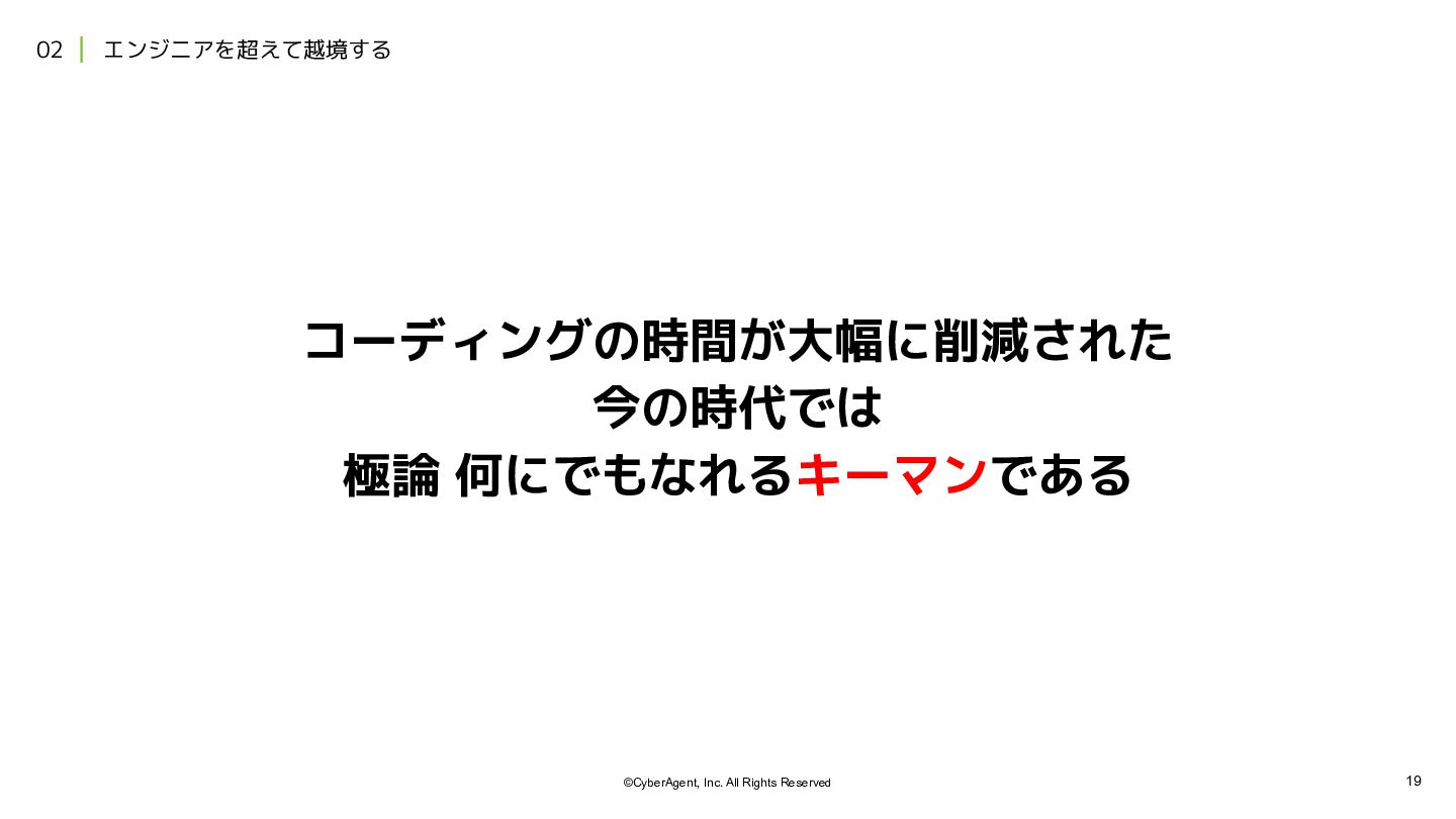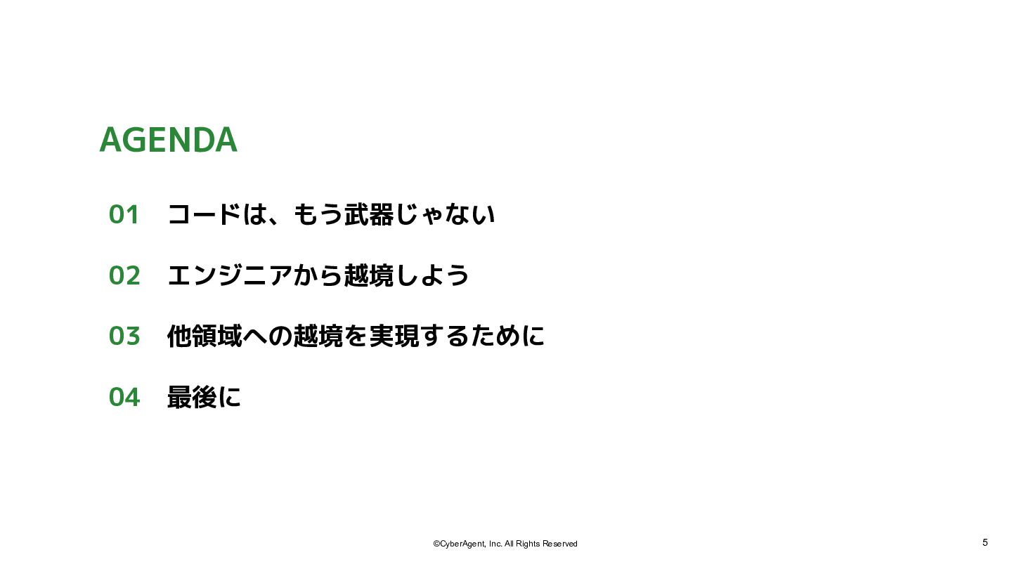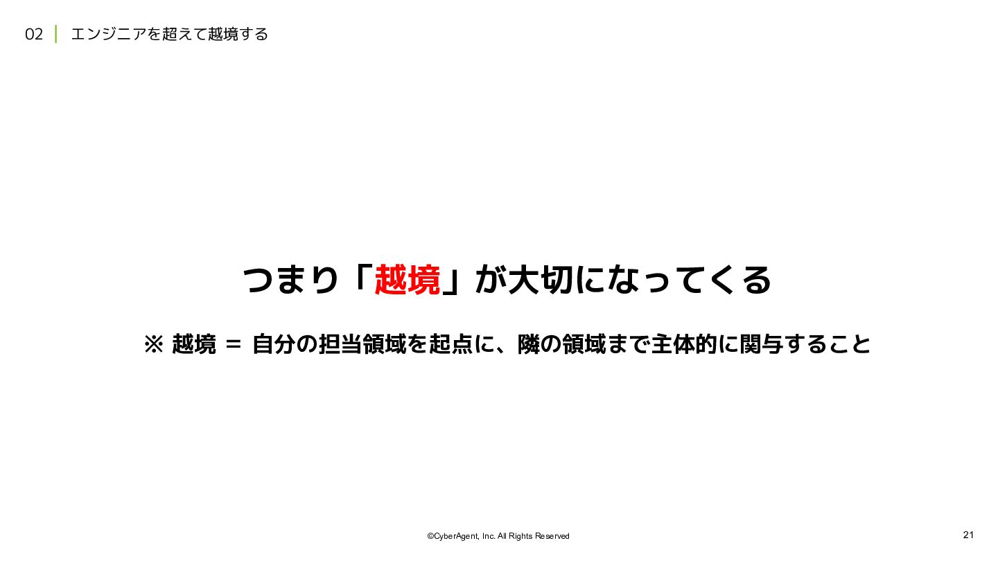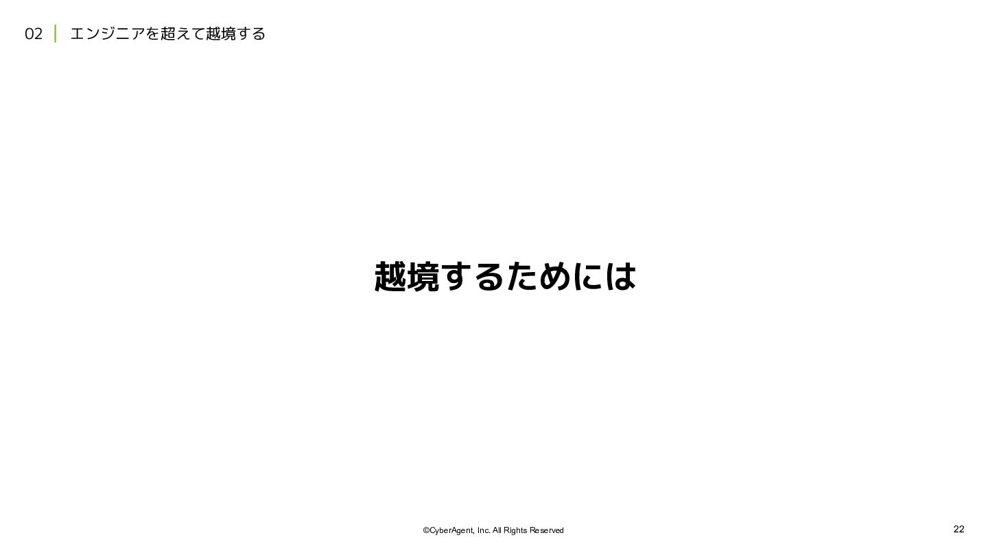 4. 21 ©CyberAgent, Inc. All Rights Reserved 02 エンジニアを超えて越境する ※ 越境