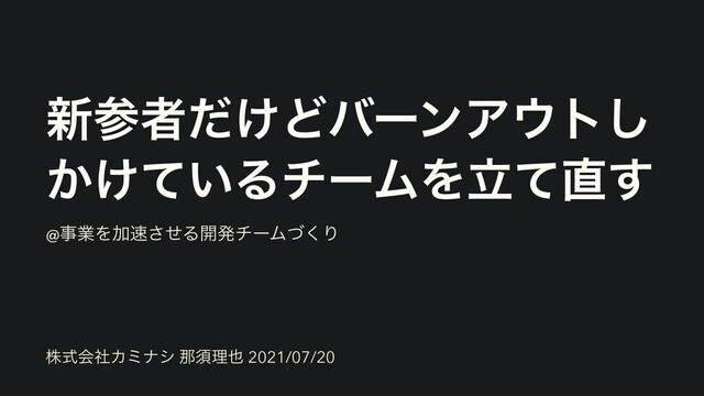 ৽ࢀऀ͚ͩͲόʔϯΞτ͠ ͔͚͍ͯΔνʔϜΛཱͯ͢ @ࣄۀΛՃͤ͞Δ։ൃνʔϜͮ͘Γ גࣜձࣾΧϛφγ ಹਢཧ 2021/07/20