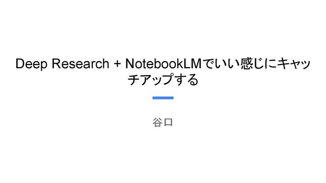 Deep Research + NotebookLMでいい感じにキャッ チアップする 谷口