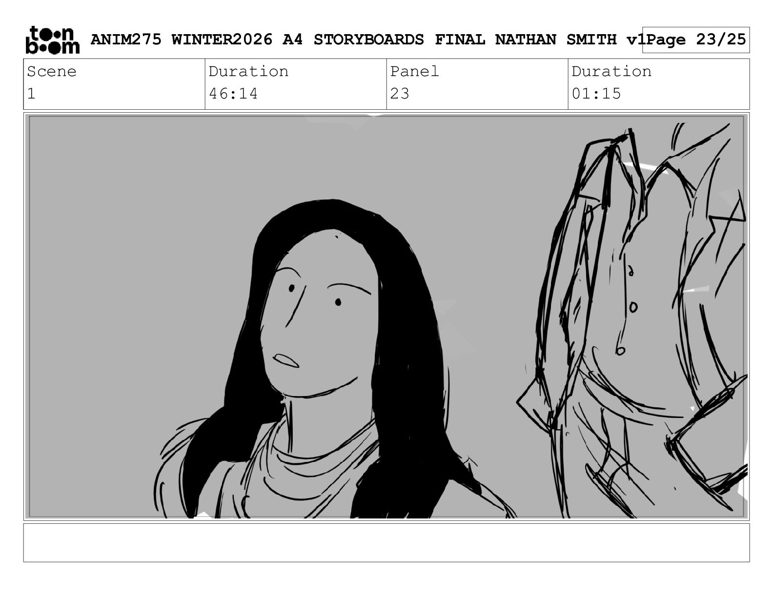 Scene 1 Duration 46:14 Panel 15 Duration 00:23 ANIM275 WINTER2026